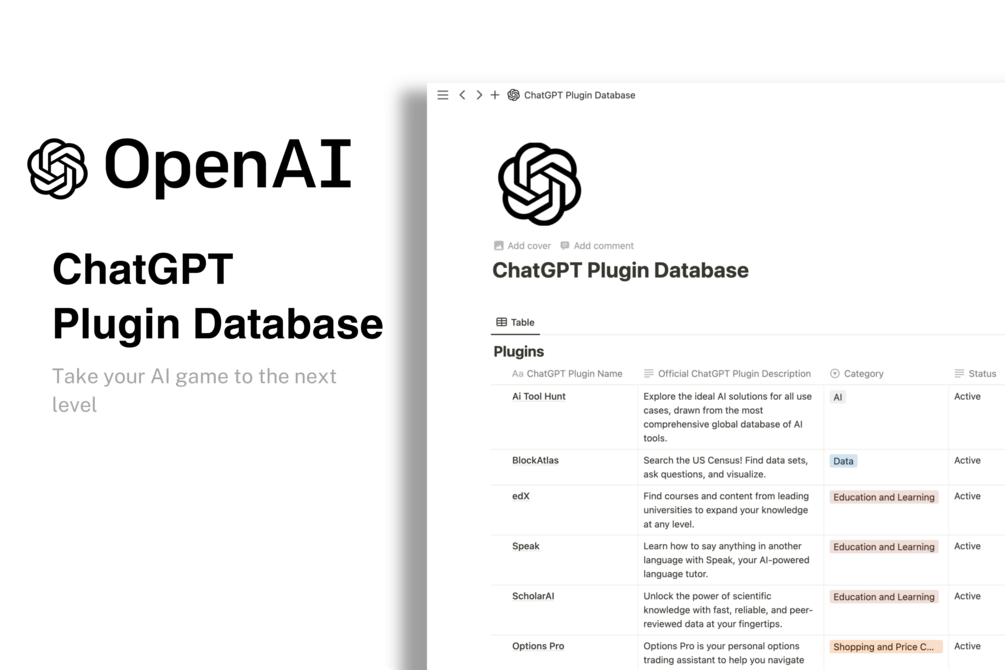 - Convenience: The ChatGPT Plugin Database makes it easy to find and install plugins for ChatGPT.